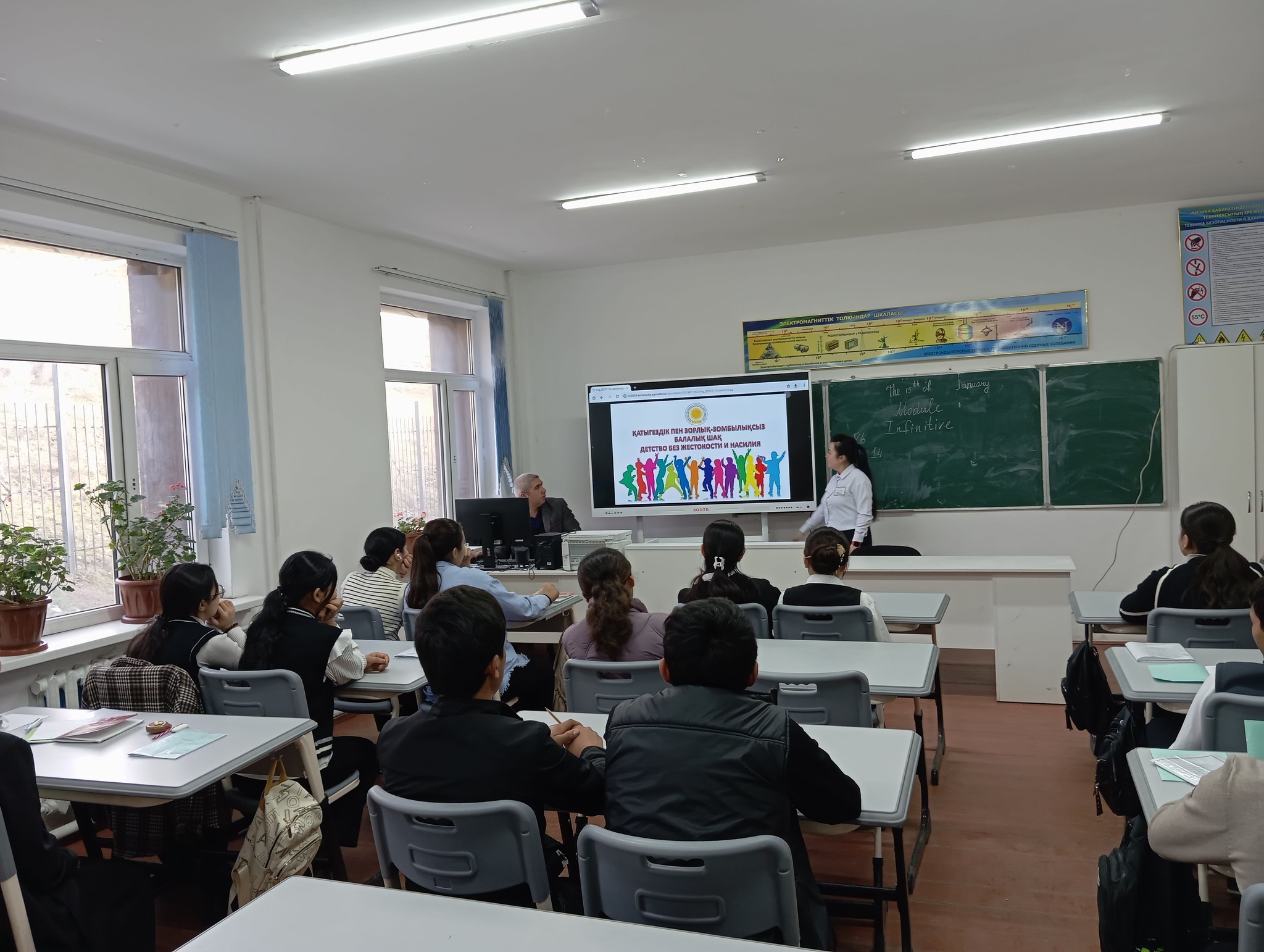 Бүгінгі таңда, отбасындағы зорлық - зомбылық тақырыбы ең өзекті мәселелердің бірі болып табылады. Себебі қоғамда орын алып жатқан, түрлі жайттар қоғамды алаңдатпай қоймайды. Осыған орай, мектебімізде 11 сынып оқушыларына " Зорлық - зомбылықсыз отбасы". Отбасы, мектеп, қоғам мәселесі" кеңейтілген тақырыпта баяндама оқып, презентация жасап, слайд көрсетіп өтті.