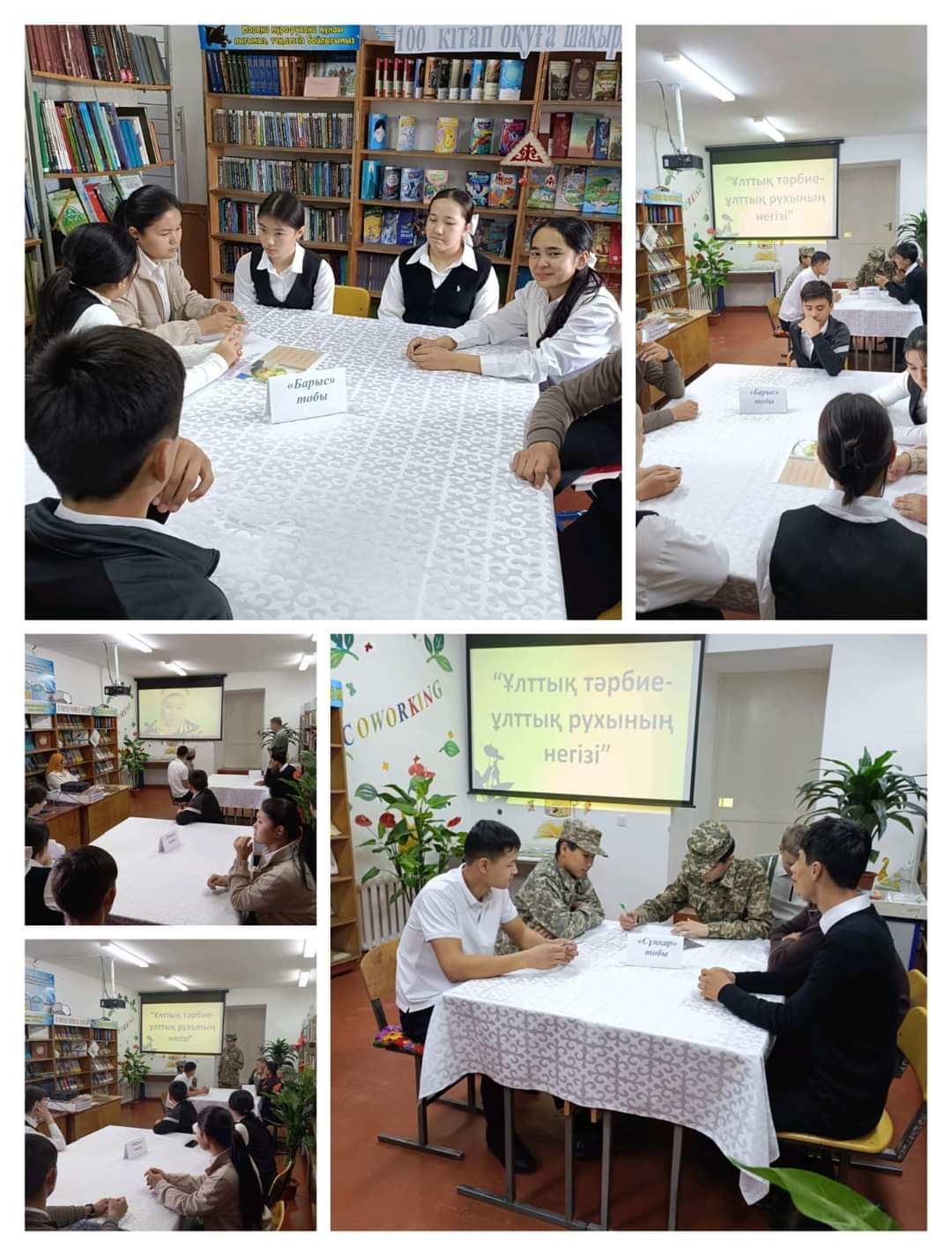 оқушылармен дөңгелек үстел өтті.Мақсаты: Оқушылардың бойында ұлттық құндылықтарды құрметтеу, сақтау. және насихаттау арқылы рухани - адамгершілік тәрбиені қалыптастыру.